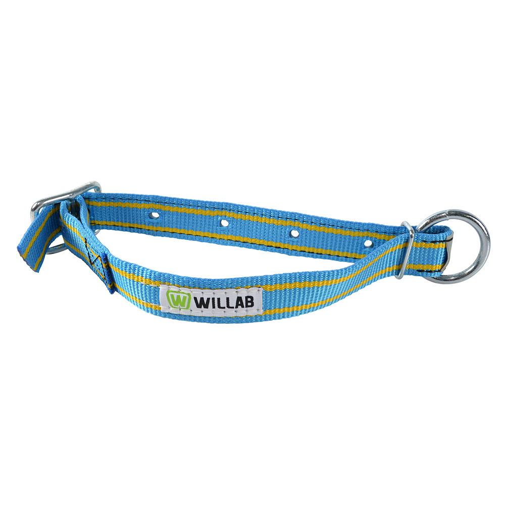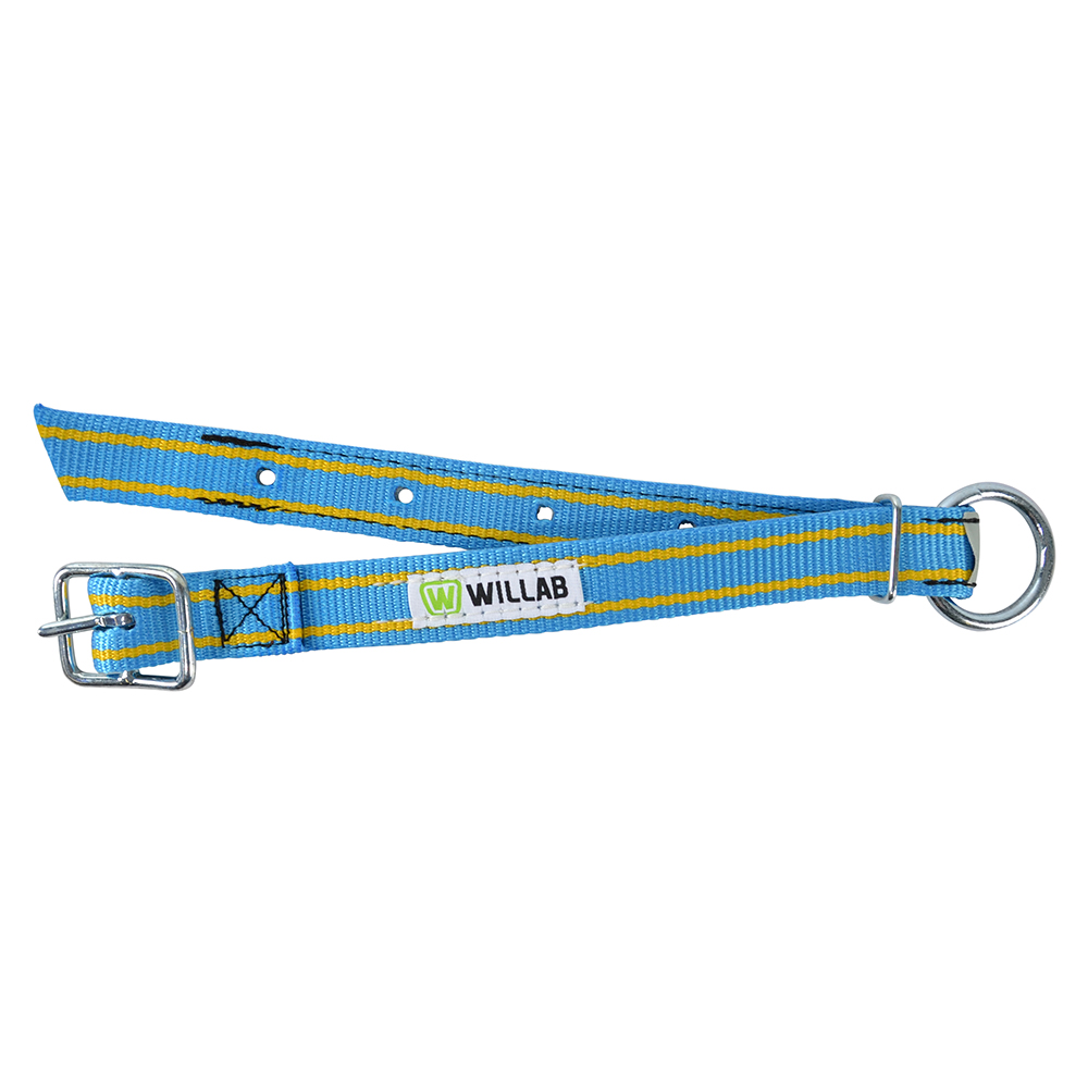 Kraftig halsrem till får tillverkad av 27 mm nylonband och försedd med sölja och ring. Längd: 550 mm.