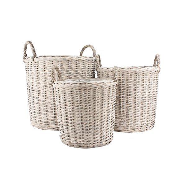 Flätade korgar med dekorativa handtag. Passar utmärkt för trädgården och altanen. Kan köpas var för sig eller som hel grupp.