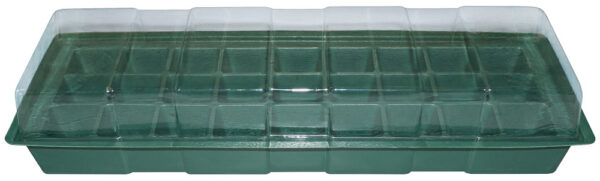 Minidrivhus med såbricka och lock för förodling av frön och sticklingar. Lämpar sig för odling av små plantor. 50x16x15 cm, 27 fack