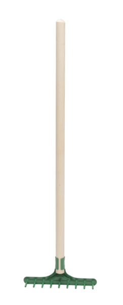 Låt barnen hjälpa till med egna redskap i trädgården! Svensktillverkad kratta i metall med träskaft i obehandlat furu. 72 cm hög.
