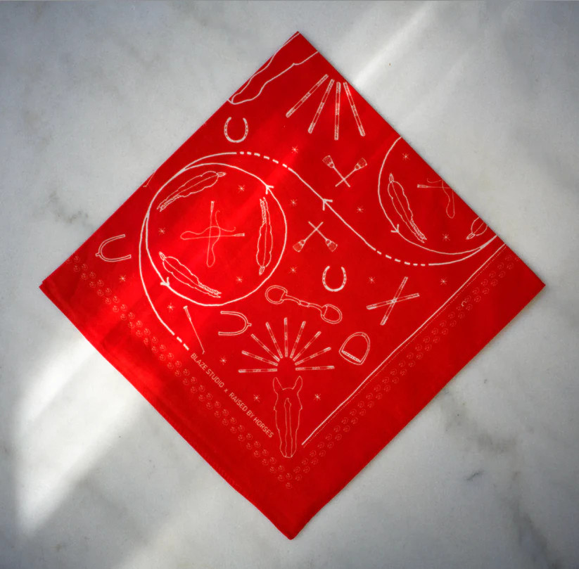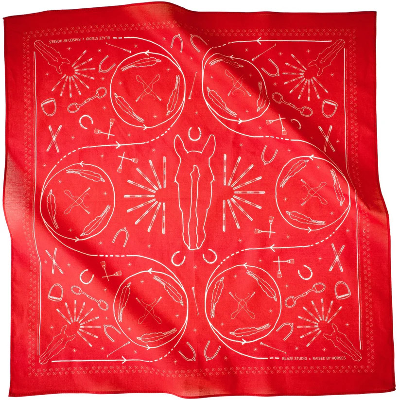 Stallion Scarf är den klassiska accessoarer till dina jeans, dina ridbyxor och din t-shirt. Scarfen är ritad för hand och tryckt på ett mjukt bomullstyg i en varm röd färg.