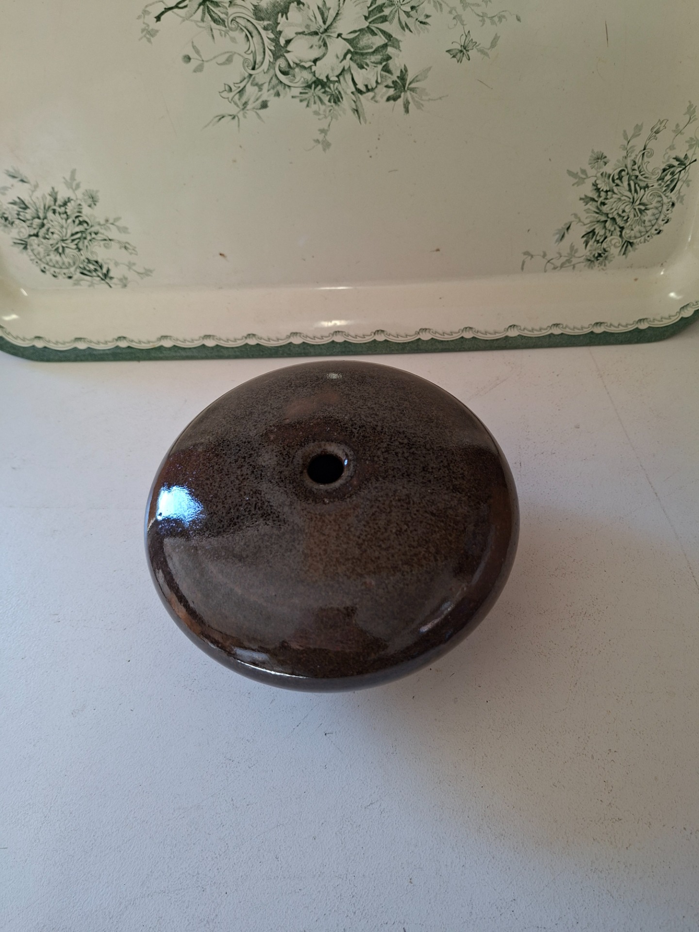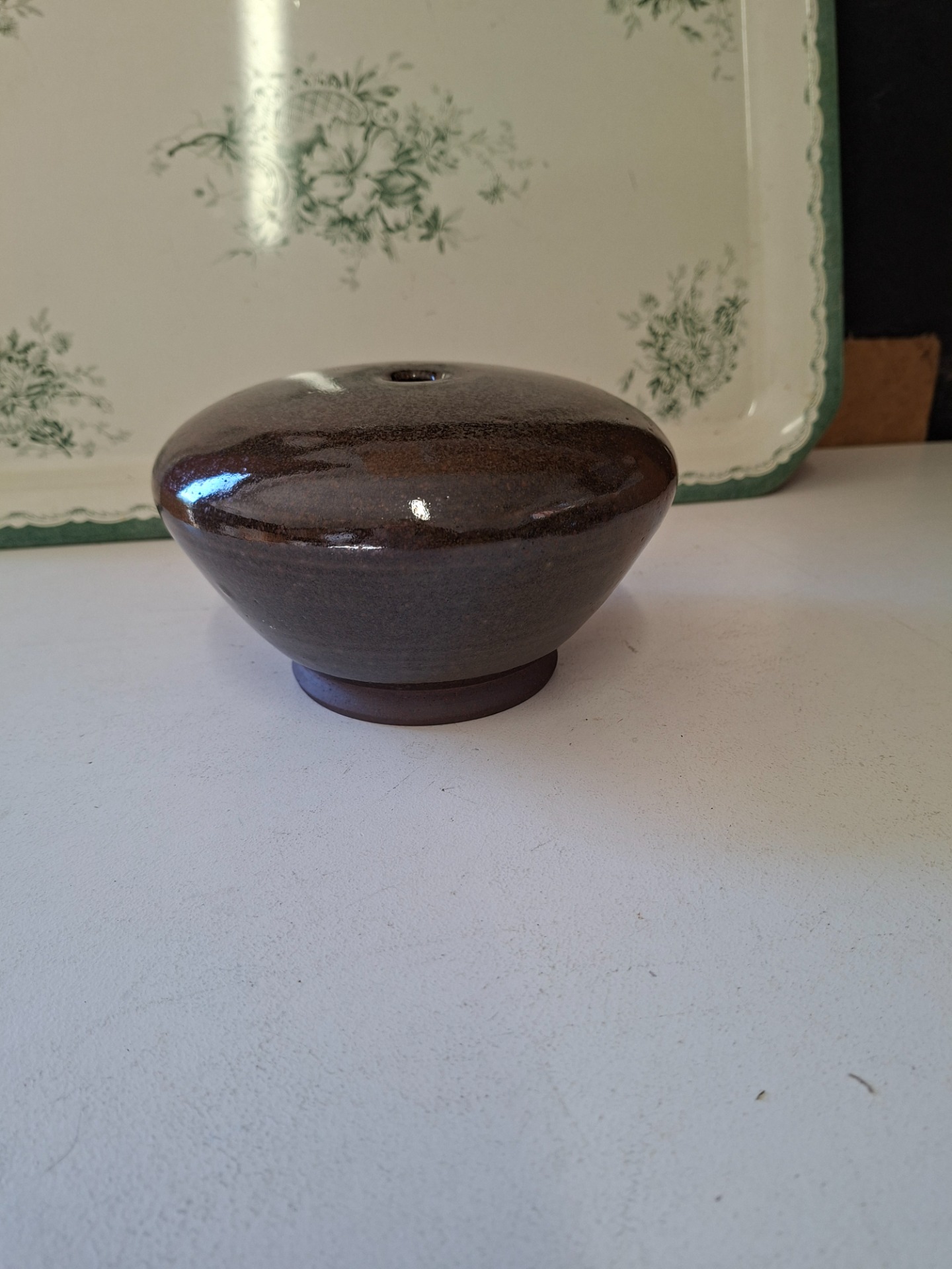 Vas i stengods med en djup skogsgrön färg, perfekt för hemmet.